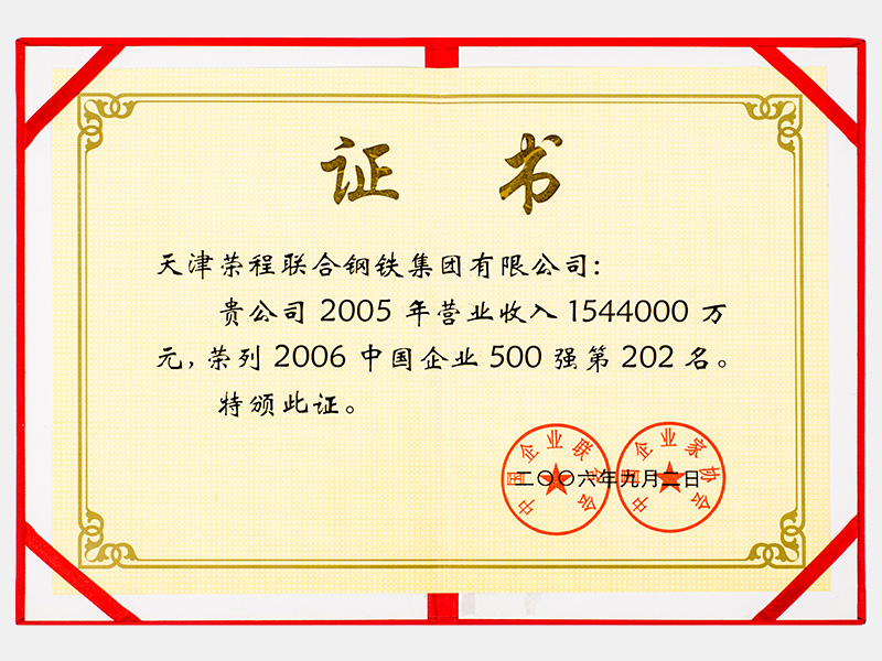 2005年?duì)I業(yè)收入1544000萬元,榮列2006中國企業(yè)500強(qiáng)第202名