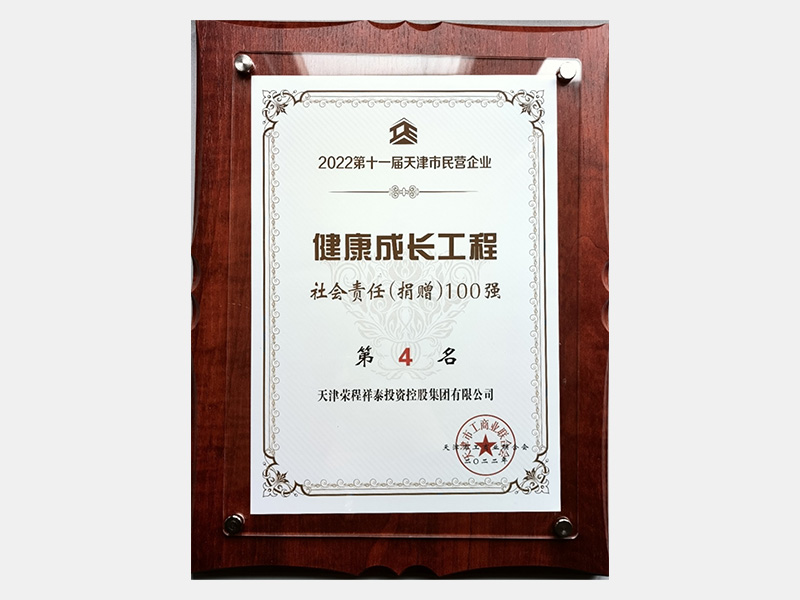 2022第十一屆天津市民營企業(yè)健康成長工程社會責(zé)任(捐贈)100強(qiáng)第4名
