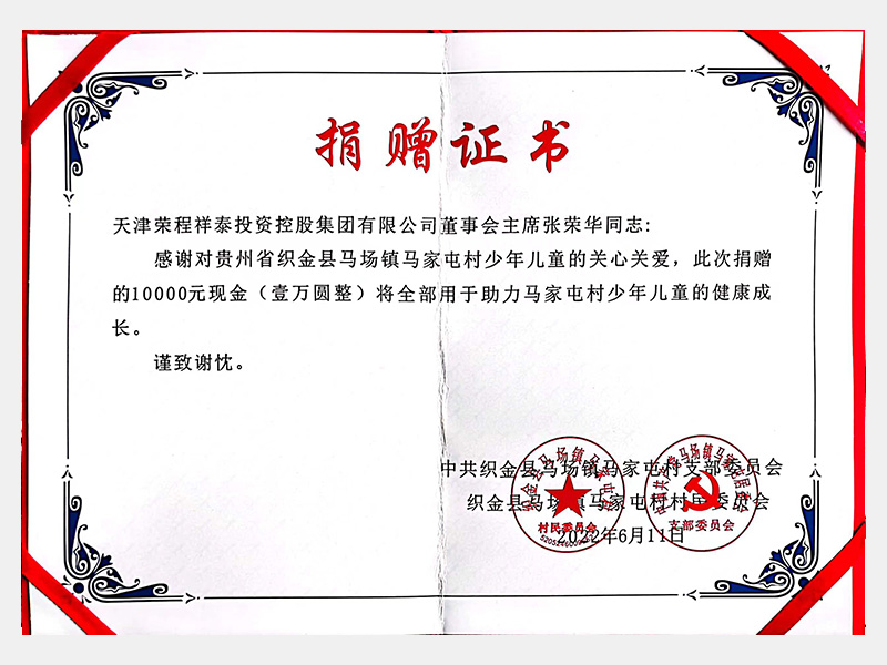 感謝捐贈10000元現金助力貴州省織金縣馬場鎮馬家屯村兒童健康成長