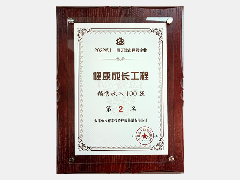 2022第十一屆天津市民營企業(yè)健康成長工程銷售收入100強第2名