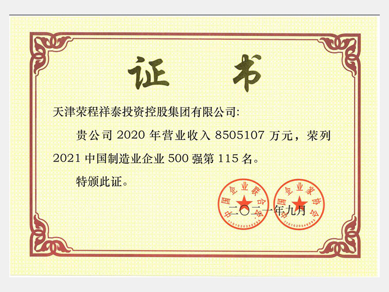 2021中國制造業企業500強第115名