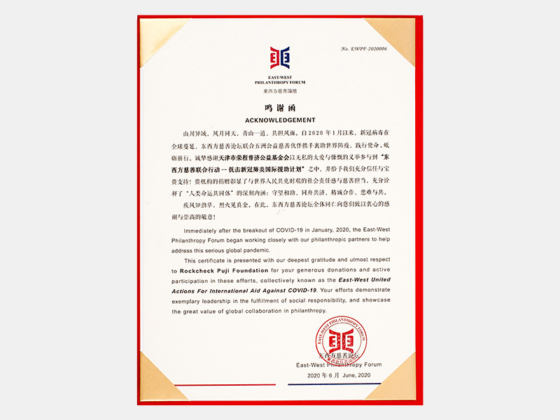 參與“東西方慈善聯合行動-抗擊新冠肺炎國際援助計劃”鳴謝函