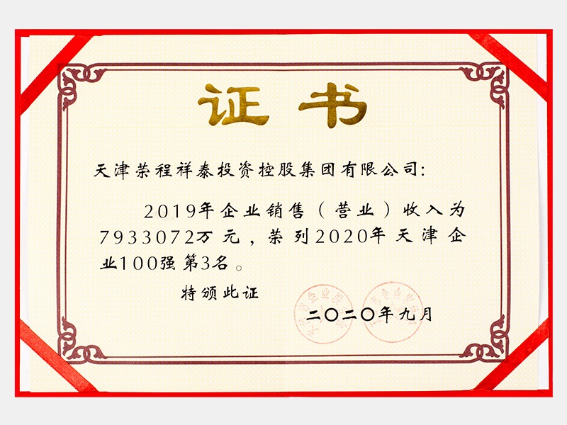 2019年企業銷售(營業)收入為7933072萬元,榮列2020年天津企業100強第3名