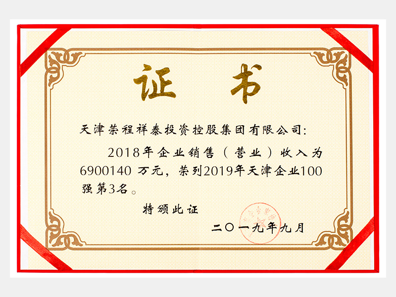 2018年企業銷售(營業)收入為6900140萬元,榮列2019年天津企業100強第3名。