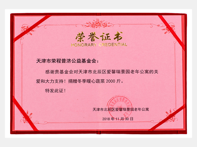 “購滯銷蔬菜捐贈(zèng)養(yǎng)老院福利院活動(dòng)”愛馨瑞景園老年公寓捐贈(zèng)冬季暖心蔬菜2000斤榮譽(yù)證書(慈善)